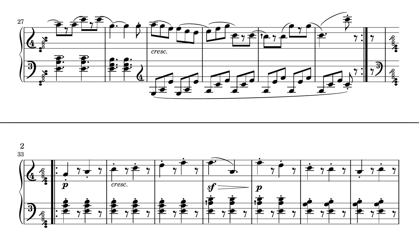Well, that would be all! Now don’t forget to uncomment the line \pointAndClickOff (delete the % at the start of the line), save the score, and render it. In the end, you should get a score similar to the following one.