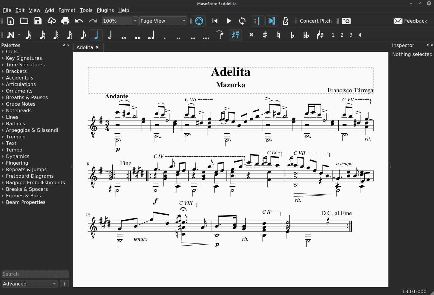 - Adelita - MusicXML file exported from MuseScore