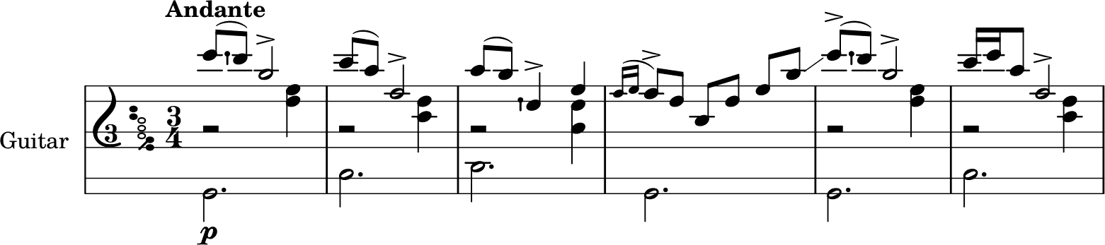 \new Staff = "guitar traditional"